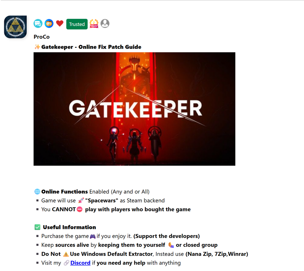 📜How To Find The Download Guides [Online-fix Patch & Game Info] 1️⃣ Click on the link 👉🏾🔗Guides Hub Link 2️⃣ Scroll down to the very bottom of the page 3️⃣ Click View All or Load More button 4️⃣ Click the CTRL + F and (Search for any game) or copy/paste or type the "✨Gatekeeper - Online Fix Patch Guide", 5️⃣Follow that 📜guides Instructions.