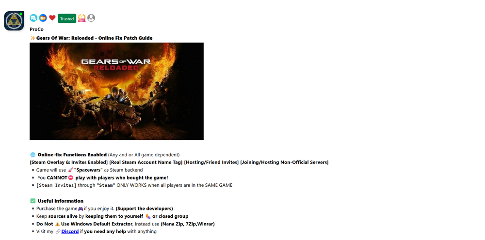 📜How To Find The Download Guides [Online-fix Patch & Game Info] 1️⃣ Click on the link 👉🏾🔗Guides Hub Link 2️⃣ Scroll down to the very bottom of the page 3️⃣ Click View All or Load More button 4️⃣ Click the CTRL + F and (Search for any game) or copy/paste or type the "✨Gears Of Ware: Reloaded - Online Fix Patch Guide", 5️⃣Follow that 📜guides Instructions.