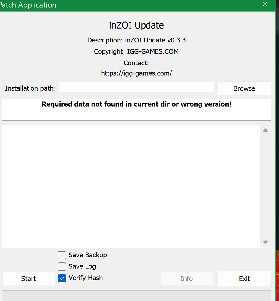 this is the path im trying to update the patch but it says not valid path please guide me how to update it which path to give i have tried every path E:\Games\inZOI\game i have also tried E:\Games\inZOI still not working