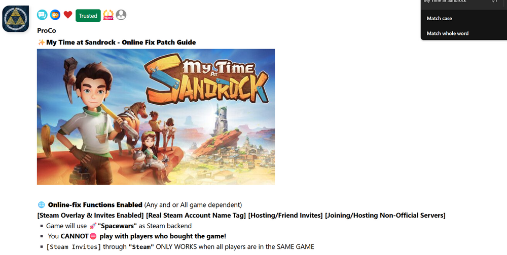 📜How To Find The Download Guides [Online-fix Patch & Game Info] 1️⃣ Click on the link 👉🏾🔗Guides Hub Link 2️⃣ Scroll down to the very bottom of the page 3️⃣ Click View All or Load More button 4️⃣ Click the CTRL + F and (Search for any game) or copy/paste or type the "✨✨My Time at Sandrock - Online Fix Patch Guide", 5️⃣Follow that 📜guides Instructions.