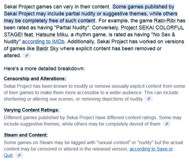 However, the fact remains that there is currently, at the time of this writing, no "official" uncensor patch available for the "official", English translated version of this game released by Sekai Project which is currently being sold on steam. Again, Sekai Project tries to release both SFW and NSFW titles. It really depends upon a specific title whether it has or has not such a patch and as we can all see, the notice on Steam says that it only has "Sexually suggestive" [Ecchi] material.