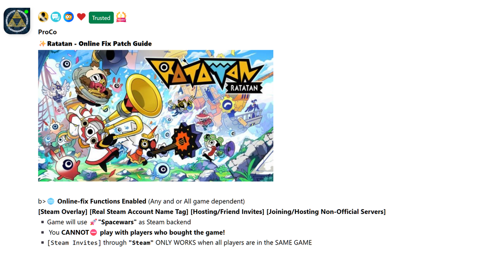 📜How To Find The Download Guides [Online-fix Patch & Game Info] 1️⃣ Click on the link 👉🏾🔗Guides Hub Link 2️⃣ Scroll down to the very bottom of the page 3️⃣ Click View All or Load More button 4️⃣ Click the CTRL + F and (Search for any game) or copy/paste or type the "✨Ratatan - Online Fix Patch Guide", 5️⃣Follow that 📜guides Instructions.