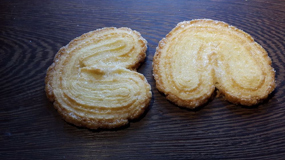 The French Palmier cookies are available on Amazon (See here) or if you're in the US, in your local supermarket's cookie aisle (They're fairly, well known in the US as well). It's best, if available, to get the fresh baked ones from a local bakery instead (The boxed ones have preservatives that are meant to extend the shelf life of the boxed cookies which does negatively affect the texture and the flavor of the cookies to varying degrees, depending upon the individual manufacturer's brand of the cookie).