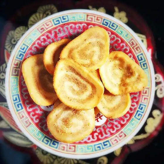If you really want to get exotic, there are also deep fried, crunchy, ear shaped, cookies made with fermented, red bean paste which originate from China known as "Cow Ear" or "Cat Ear" cookies. You can also find those for sale online at Asian supermarkets like "Weee!" (See here) or fresh, deep fried at local Asian bakeries on the East and West coast of the US. If you can find them at a local bakery (Not too many Asian bakeries offer them anymore as it's almost a "Lost art" and expensive to craft with a low markup. I found a recipe with step by step pictures here~!) try to get the ones that are deep fried in lard.