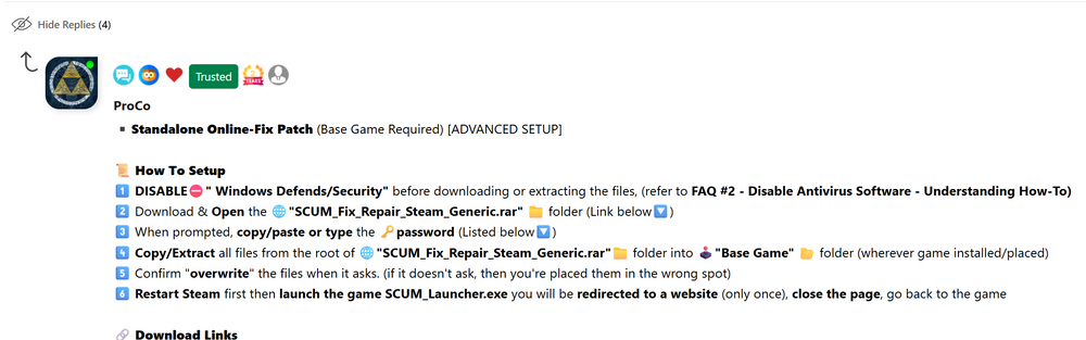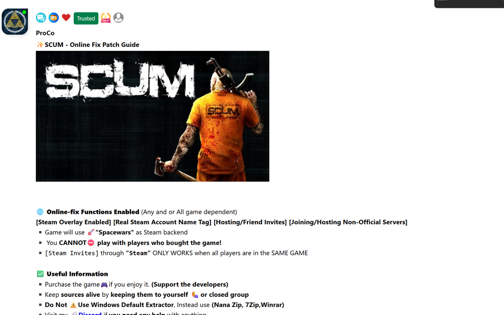 📜How To Find The Download Guides [Online-fix Patch & Game Info] 1️⃣ Click on the link 👉🏾🔗Guides Hub Link 2️⃣ Scroll down to the very bottom of the page 3️⃣ Click View All or Load More button 4️⃣ Click the CTRL + F and (Search for any game) or copy/paste or type the "✨SCUM - Online Fix Patch Guide", 5️⃣Follow that 📜guides Instructions.
