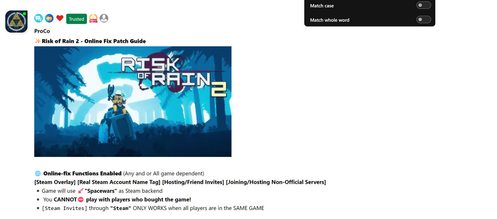 📜How To Find The Download Guides [Online-fix Patch & Game Info] 1️⃣ Click on the link 👉🏾🔗Guides Hub Link 2️⃣ Scroll down to the very bottom of the page 3️⃣ Click View All or Load More button 4️⃣ Click the CTRL + F and (Search for any game) or copy/paste or type the "✨Risk of Rain 2 - Online Fix Patch Guide", 5️⃣Follow that 📜guides Instructions.