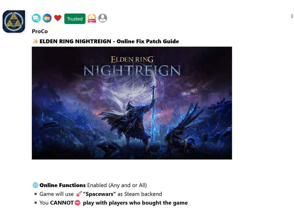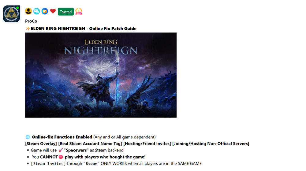 ✨ELDEN RING NIGHTREIGN - Online Fix Patch Guide [Game: v1.02.4, Collaboration: v1.02.4, Seemless co-op: v1.0.6]` (Guide updated on 10/23/25)