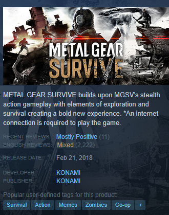 Honestly, there was a point after Kojima was fired that I was seriously contemplating whether or not Konami had started money-laundering for the yakuza or something, with how badly it was shooting itself in the foot at every opportunity. The firing itself, Silent Hills being axed as a result, MGS Survive, the MGS3 Pachinko machine that turned into this game...