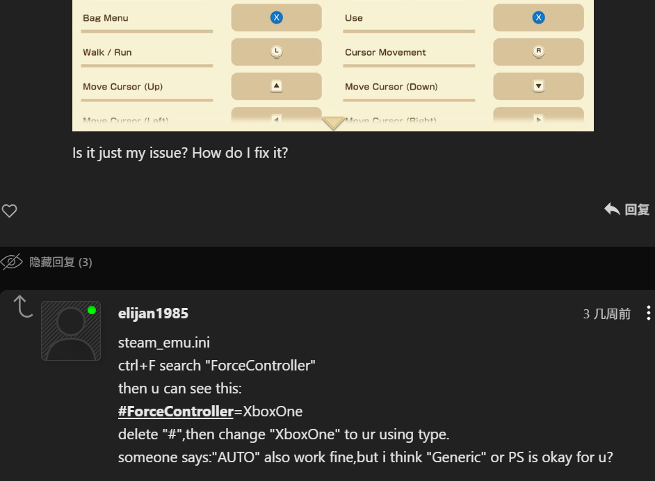 steam_emu.ini ctrl+F search "ForceController" then u can see this: #ForceController=XboxOne delete "#",then change "XboxOne" to ur using type. i dont have steamdeck, so "Generic" will okay maybe?